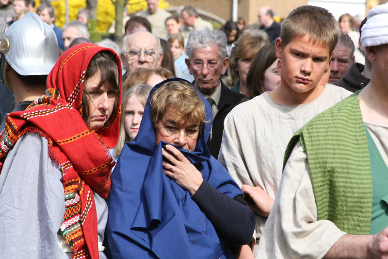 Christ meets the women of Jerusalem.