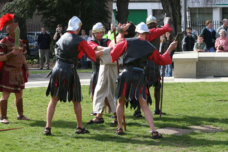 Pilate washes his hands of the affair.