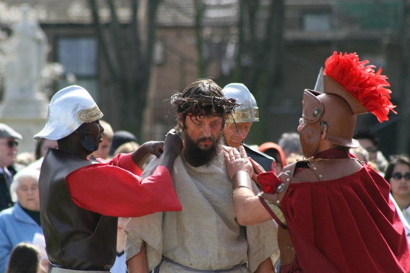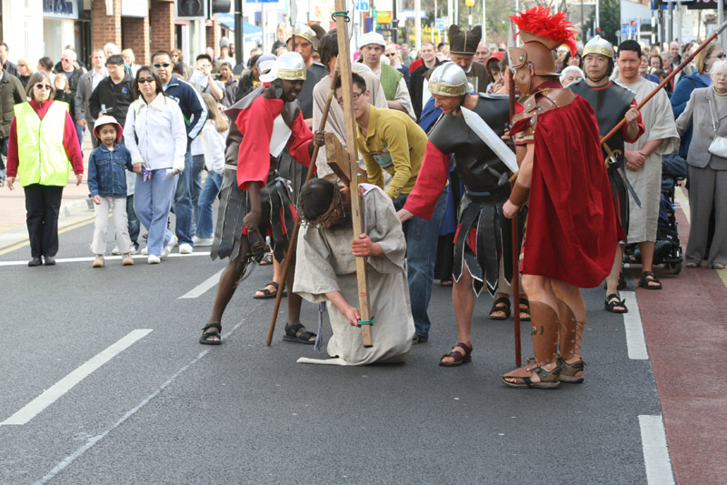 Jesus falls on the road to Calvary.