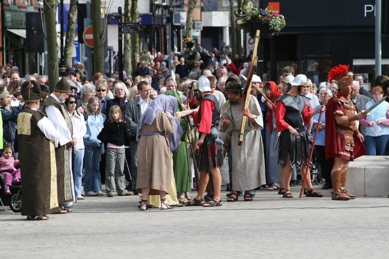 Christ meets the women of Jerusalem.